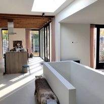 Compleet ingerichte bungalow in Bussum. Ontwerp woningbasis aangepast qua indeling en functies. Ontwerp keuken en badkamer.